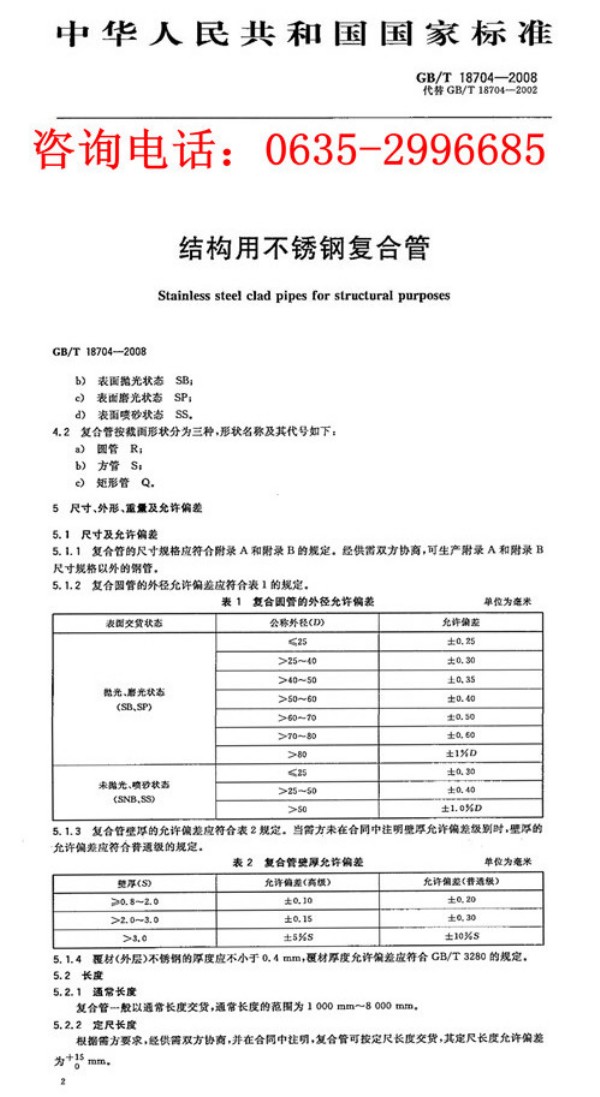 不銹鋼復合管壁厚、外徑允許偏差、執行標準